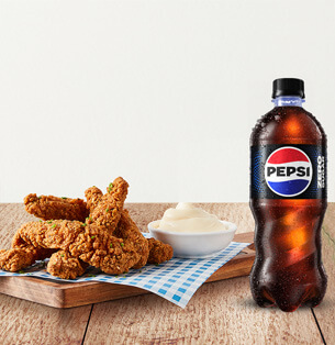 E.g. “Our delicious house-made chicken tenders paired with your choice of side and refreshing PepsiCo beverage”, and
